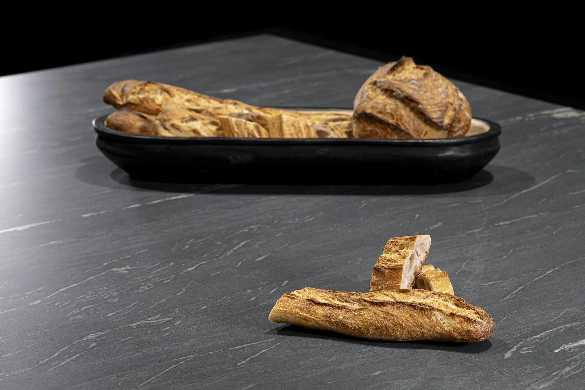 El fondo oscuro de la pieza contrasta con su veteado y le aporta a las cocinas y espacios el toque distintivo y sobrio que tanto se busca hoy en día.