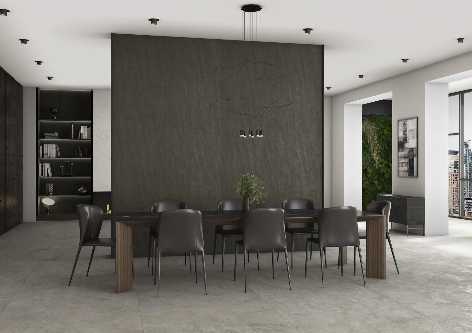 Esta serie está inspirada en las piedras volcánicas del sur de Italia. Su variación gráfica es uniforme y aleatoria con claros desgastes en diferentes partes de las piezas, también encontramos algunas marcadas vetas en los extremos de las superficie.